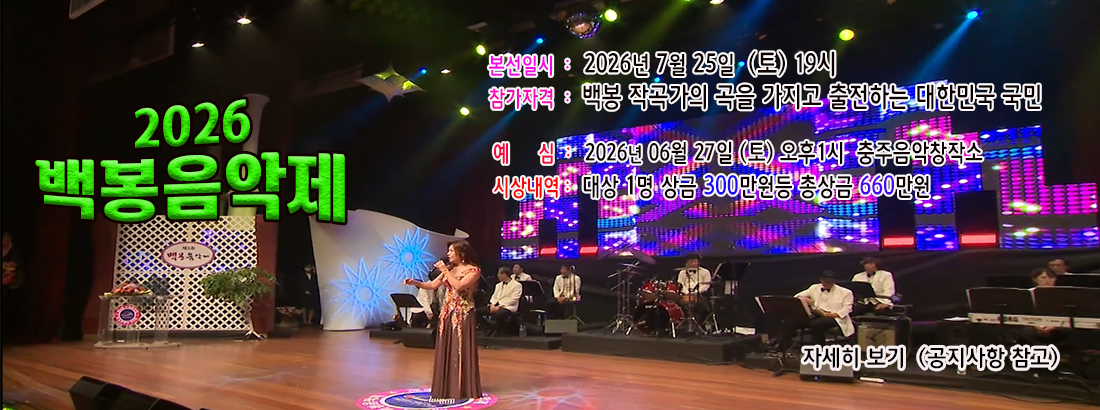 제8회 백봉음악제(2026년 7월 2… H인기글 제8회 백봉음악제 ▣ 일 시 : 2026. 07. 25(토) 19시  …
