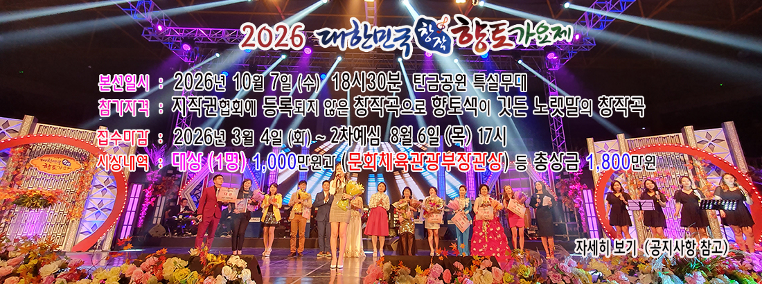 제24회 대한민국창작향토가요제(202… N새글 제24회 대한민국창작향토가요제 충주시가 예향의 본고장으로서 대한민국창작향토가요제를 통해 우륵의 음악정신…